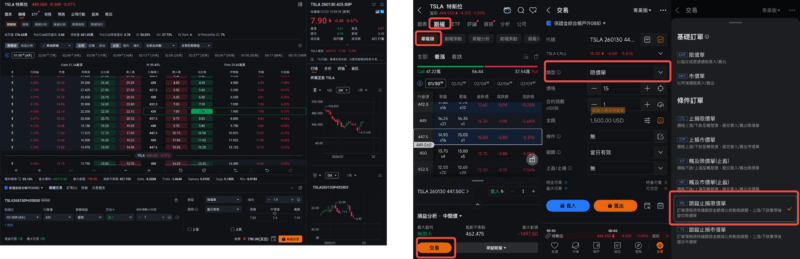 - 路徑:期權鏈→選中合約→交易→訂單類型