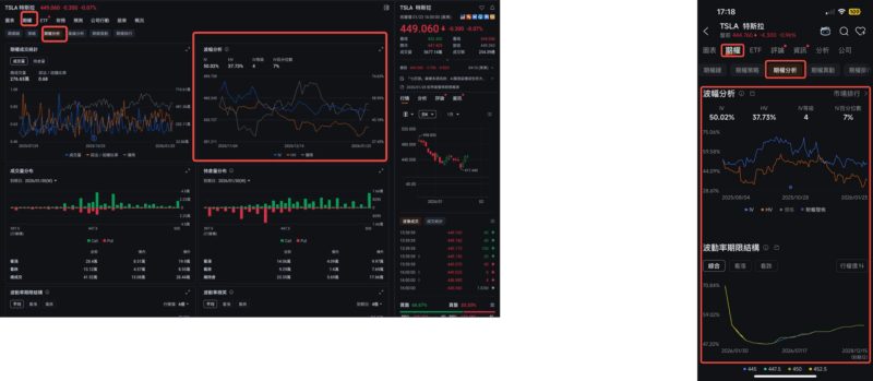 ◦ 注意:不同股票的IV標準不同(如Tesla的低波動可能⾼於台積電的⾼波動)。