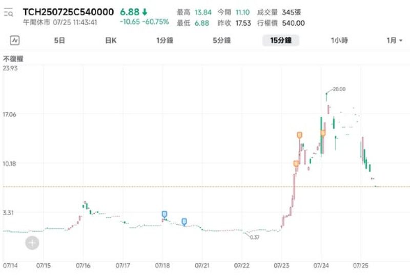 今天(0725)上午時段市況回落,恆指中午前已回跌277點,科指跌近百點,強如騰訊也回跌至547元附近。