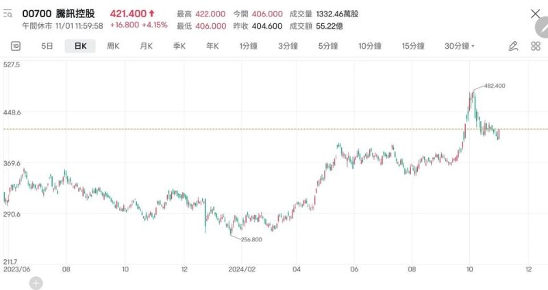 今年(2024年)10月2日,騰訊升至最高470元之上時,價外10 % call 的引申波幅高至60%之上,破了騰訊歷年call 的最高iv 水平,後來騰訊股價從高位回跌,iv也回跌得很快。