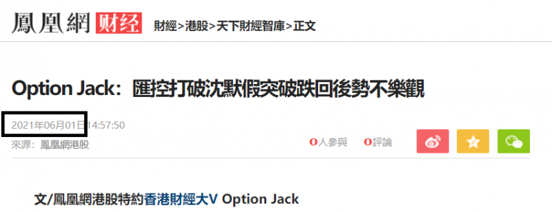 5月31日匯豐已出現逆轉訊號