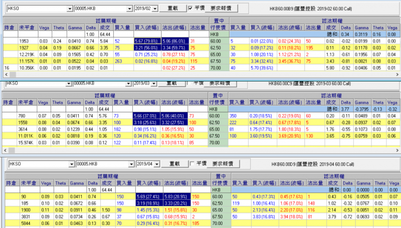 輪流炒的節奏持續,看似弱勢股份,突然又回升,走勢像2017年般,但節奏更快速,即使盈警或利潤減退的股份跌一日又再升及破頂,例如中人壽,舜宇等。 2月份進入反覆週期,比對1月升到底的操作難度增加不少,倉不能太大。 匯控業績不及預期,跌幅卻不大,過往歷史除淨後通常出方向,去年2月在除淨後80元之後「一路向南」可見。 所以今次未來若可站穩65.10及今日陽燭收可博上,以64.00作止蝕,差價不大,若向上發展可持續加注,憧憬今次「一路向北」。 人壽在1月份突破18元後,已說過可能是2019年黑馬,好倉繼續持有,最牛看24元,但由於升幅已多,現在才上車的投資人必須忍受回調風險,不能大注。 吉利汽車不經不覺已上15元之上,回頭一看一月初時,還在戰戰兢兢的憧憬買入當時只11~12元附近落後的股份,現在已跑贏眾指數股。 過去連續兩個星期五回調,提防成為節奏,好倉不能太進取。 《期權風險大,輸得起先好玩,新手勿試》 個人的交易方法「並不」適合大部分投資者,建議找到自己承受到的有效交易策略。 以上乃個人之操作日誌,並不構成推薦,建議或誘使買賣之行為,期權價格可能急升或急跌,過往之績效不代表將來之獲利保證,交易員隨時改變看法,投資人應自我評估風險。