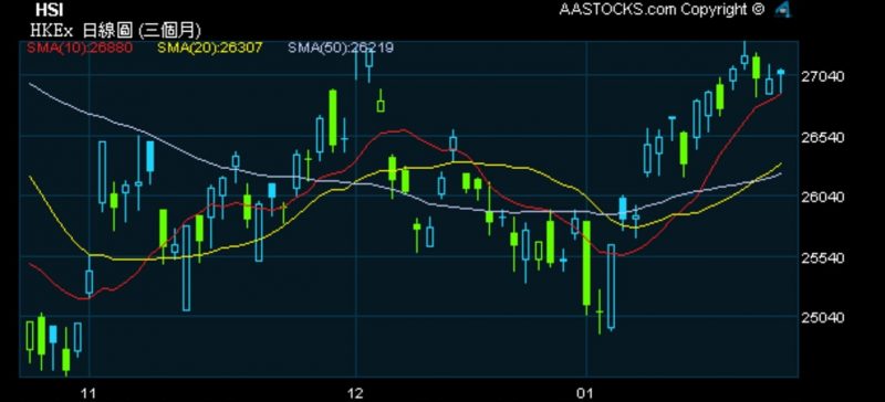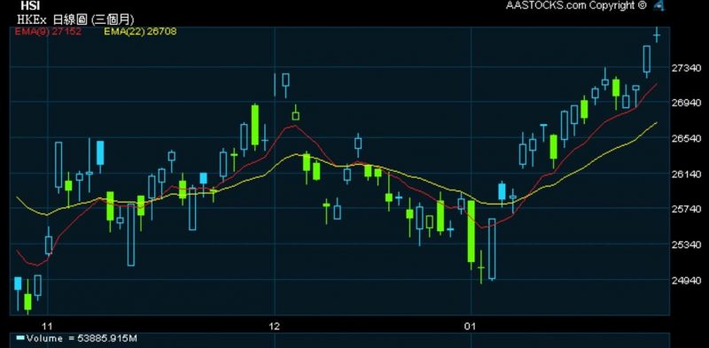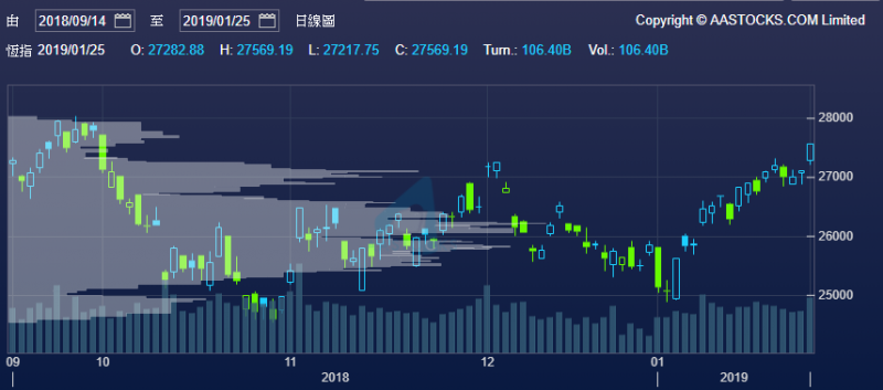 1,趨勢優先 2,買在當頭 3,環球情勢 4,跟隨節奏 5,承受過程 6,強弱比對 7,市場氣氛 8,分注出入 9,追市勇氣 10, 加注減注 … 所謂強勢之下無弱股! 什麼壓力位、重貨區、平均線、基本分析,在趨勢的前提下不堪一擊。 年初弱如: 國壽、吉利、瑞星、小米都一隻隻急升可見。 基本分析普通,走勢停步不前的,突然大行唱好一句:港交所。 保力加收窄一個多月,我等到花兒也謝了的匯控也追落後。 一切皆勢也。 本來上星期看似走勢將盡的恆生指數,又受到美股及A股上升激勵~ 欲罷不能。 第二目標價28300已到,適可而止,步步為營,繼續炒股不炒市,控制short long之比例。