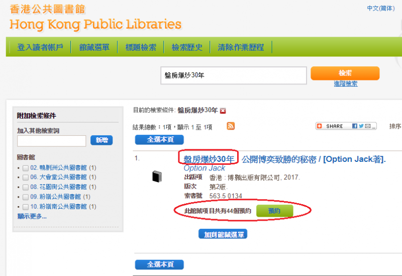 【關於#盤房爆炒30年】 有網友給我圖片,圖書館借閱要輪候排到44名… 其實現時書局應該還有貨,不過數量有限,而且售罄後「未必」會即時再加印。 有興趣的朋友快去書局搵或 查詢 感謝各位的熱烈支持! PS 各位一定會問我下一本幾時出? 大約在冬季…前