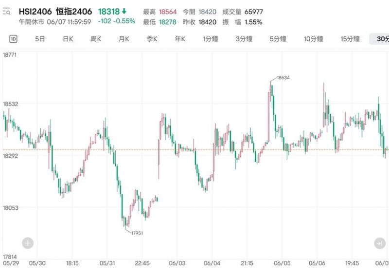 一般來說在漲升市時追買是順勢,漲升市時做空是逆勢,但大部份的時間是沒有趨勢或方向難辨的,例如連續三天上漲又在平均線之上,回跌時買入,是順勢或是逆勢?很多人會說是順勢,因為是升浪的回調,但在當天的角度是逆勢,在中線的角度可能也是逆勢,你以為的順勢交易,可能只是反彈波段的順勢,反彈完結之後繼續向下,所以是逆勢。 就用最近的例子,恆生指數從 4月22日開始的上升浪,至5月20日的19706高位結束,之後向下回跌,回跌時買入是順勢或逆勢?當時以為是順勢,後來發覺原來是逆勢。 或許未來又上破19706的高位呢?又變成順勢? 所以無論你怎麼判斷,中線的部署絕對會受到短線波動的影響,尤其是在失落週期裡的技術分析,經常被隨機打敗,圖表分析,只不過是一個事後評估,用來寫教科書或文章的題材,而在云云分析工具當中 ,我們要跟隨那一種,哪一個才是正確的? 答案是沒有一個是正確的,也沒有一個是錯的,聽起來像是廢話,真相確是如此,因為時機的不同。 恆指從5月份的高位回落至上周五(5月31)最低位18077之後反彈,自星期一開始每天衝高一段之後回落,隔天又再衝高一段回落,連續4天至星期四一樣的節奏,但星期五經常是破奏的日子,有經歷的交易員自會明白。 今天(0607)恆指的走勢和過去4天相反,沒有像過去4天般低開衝高一段,而是直接高開後低走,至中午時段倒跌77點,情況有些類似上星期五的走勢,如果下午再跌的話。 所以無論判斷短,中或長線的順勢或逆勢,必要參考每日的升跌節奏,這是沒有趨勢時的交易方法,節奏分析是在沒有明顯趨勢的週期裡,很有效交易分析工具。