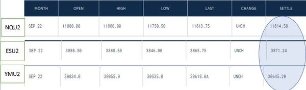 圖一乃昨晚三大指數 標普500、納指100及道指9月期貨結算價。