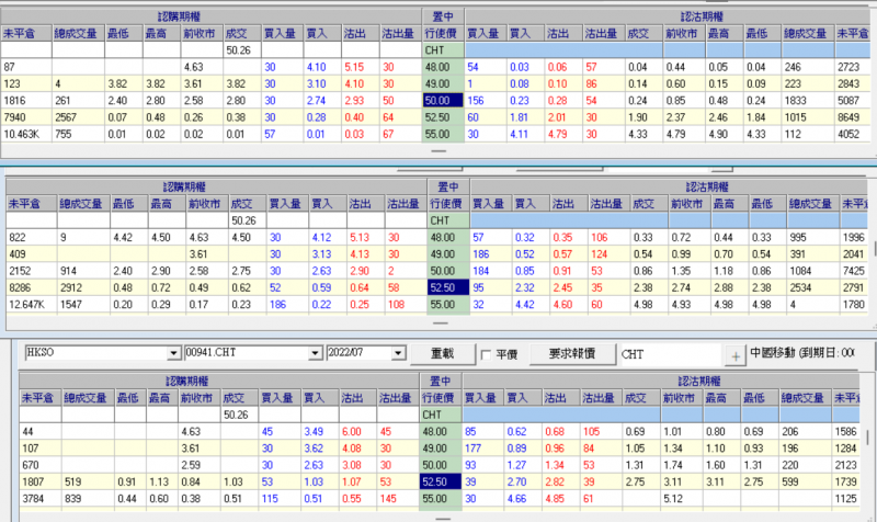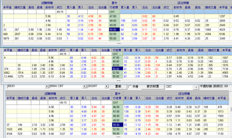 圖1為中移動5、6及7月股票期權,除淨前5月24日,