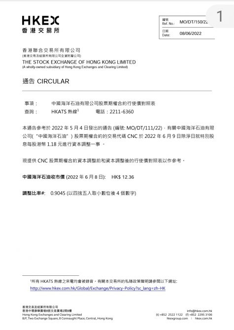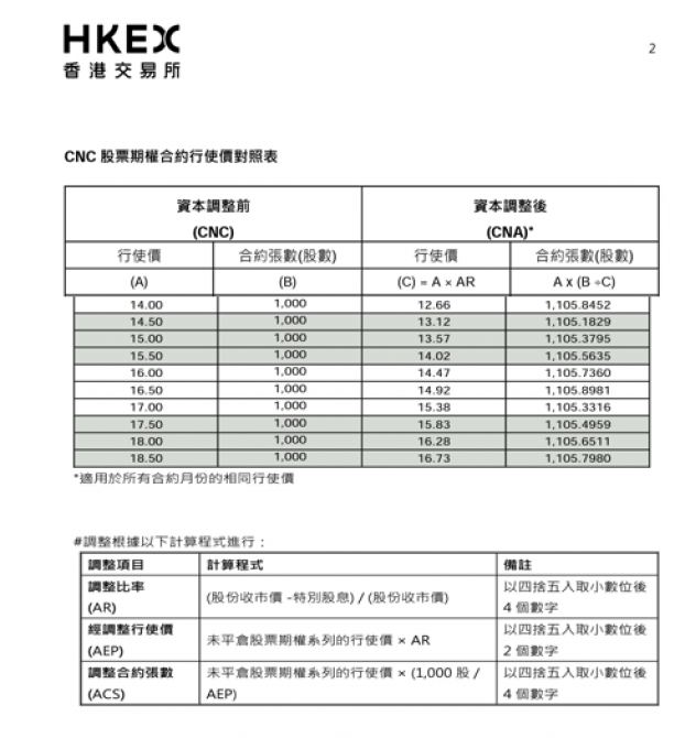 2. 於除淨日,新的中海油股票期權,推出CNC以作交易,